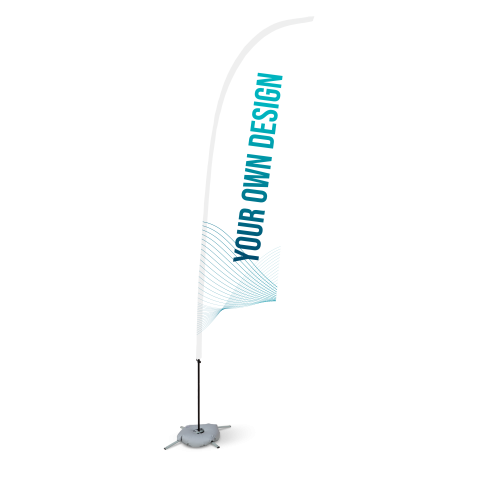 El Fly Banner Surf, conocido también como tipo Vela o Beach Flag Surf, es un Fly Banner con su bandera en forma de tabla de surf. Una de sus principales ventajas es que dispone de más espacio en la bandera para el diseño del mensaje que se quiere comunicar. Puedes elegir entre su versión estándar o la versión a doble cara, que permite la personalización de dos mensajes publicitarios. En esta página puedes comprobar las diferencias entre ambas versiones de los Fly Banners.