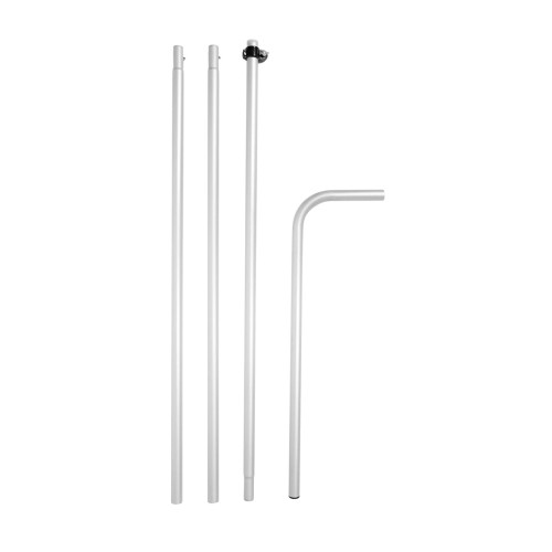 Materials: Aluminium sections (10mm thick). The horizontal (power arm) L-shaped section measures 11 cm where it is attached to the vertical pole and the horizontal section (the one that is inserted into the flag pole sheath) measures approx. 84 cm.